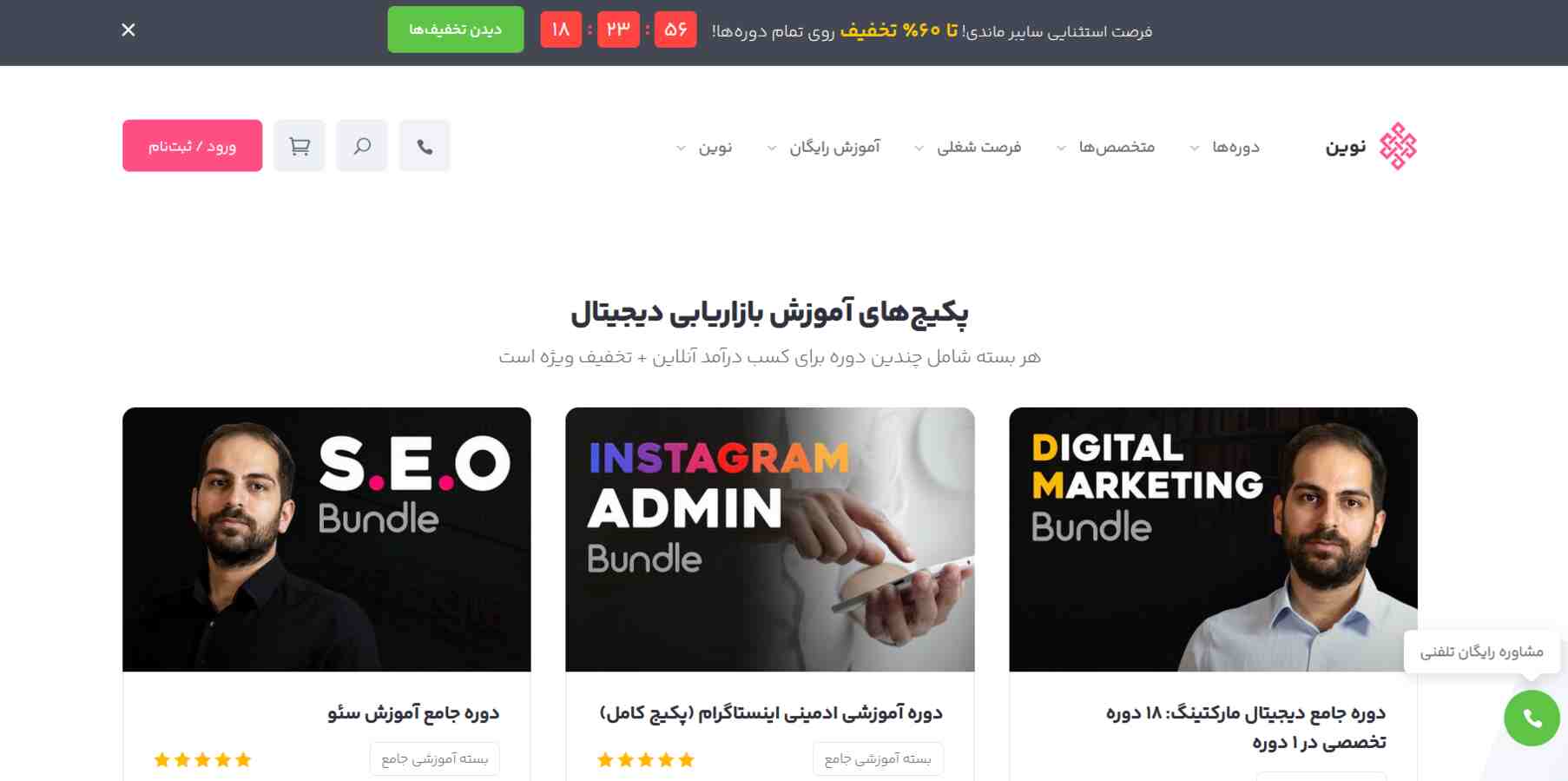 نوین یکی از معتبرترین آژانس‌ها و آکادمی‌های دیجیتال مارکتینگ تهران است که خدمات جامعی از جمله مشاوره سئو سایت، بازاریابی دیجیتال، تولید محتوا، و برگزاری دوره‌های آموزشی ارائه می‌دهد. دوره‌های آموزشی این مجموعه به صورت تخصصی در زمینه‌هایی مانند سئو داخلی سایت، تحقیق کلمات کلیدی، لینک‌سازی، و بازاریابی محتوا طراحی شده‌اند و شامل پشتیبانی حرفه‌ای و معرفی به بازار کار هستند.